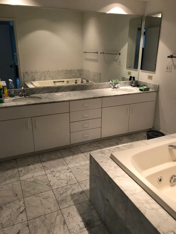 Estate Sale forced by California Executor Trustee. ALL OFFERS WILL BE CONSIDERED WITHIN 24 HOURS. Large 2-bed & 2 full bath condo with full East exposure. Stunning fully mirrored entrance foyer with imported Italian marble floors in foyer, hallways in master bath, on walls & thru-out sep shower. Huge LR with fireplace flows directly into the sep dining area. Spacious living is ideal for entertaining. Large windowed eat in kitchen, CT floors, two walls of counter space, upper & lower cabinetry. Double oven, vented gas range & built-in microwave. Pvt master bathrm features cultured marble counter top thru-out with new Kohler under-mounted sinks & plumbing. Both bedrms have huge walk in closets, built in drawers & double row rods & shelving. Second bedrm features a customized full wall of built in cabinetry, glass display shelving & desk. 2nd Bedrm functions as a den/office & can easily convert back to BR. In unit washer/dryer. Large storage locker on same level as unit. Price includes parking spaces #89 & 90. Must be sold to settle estate.
