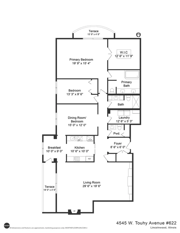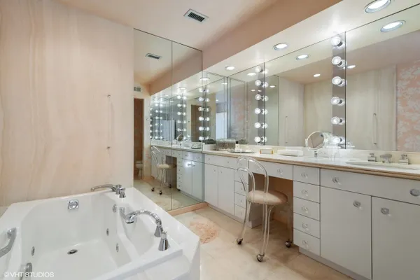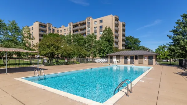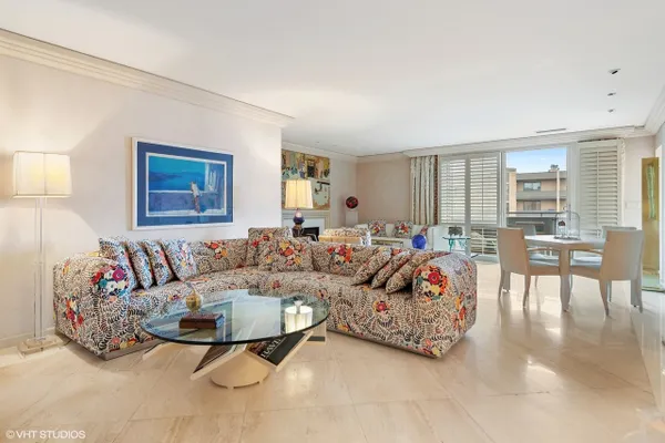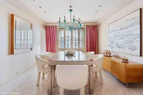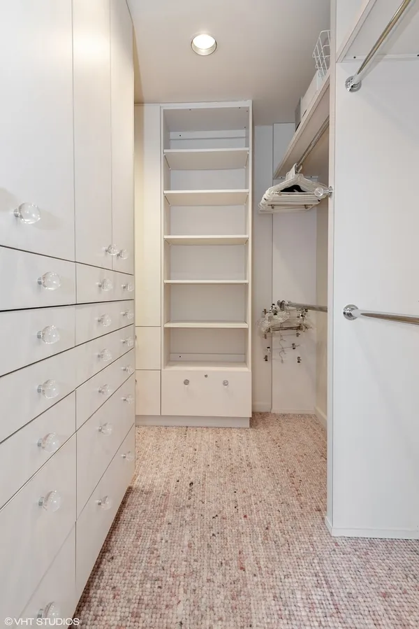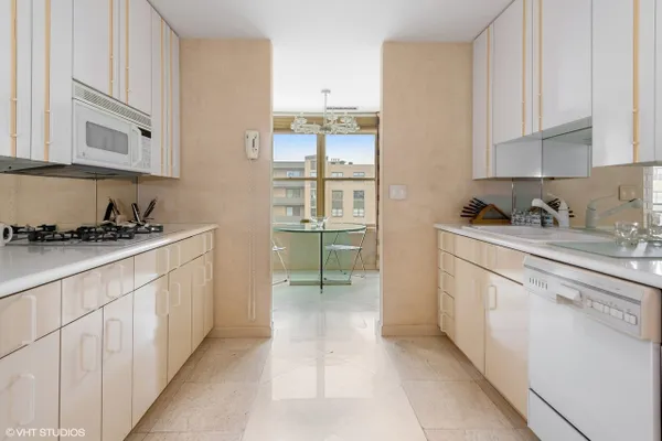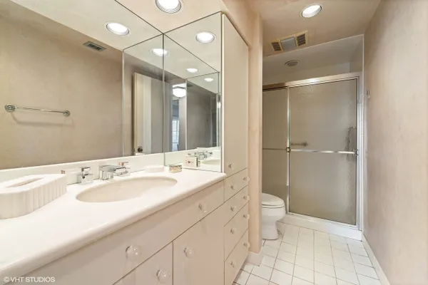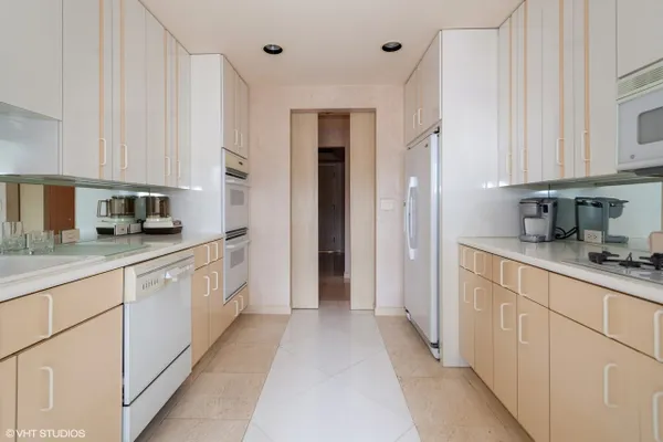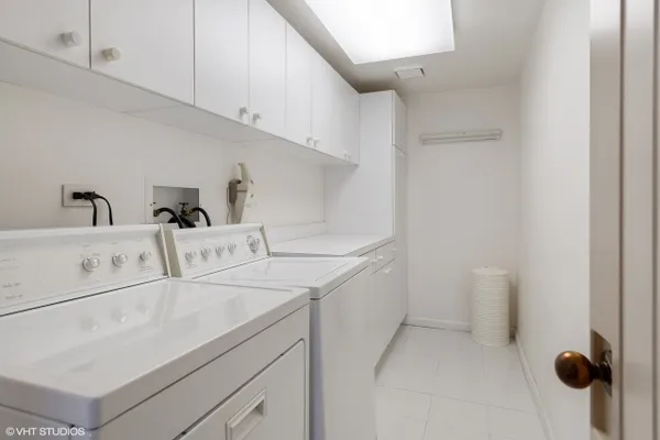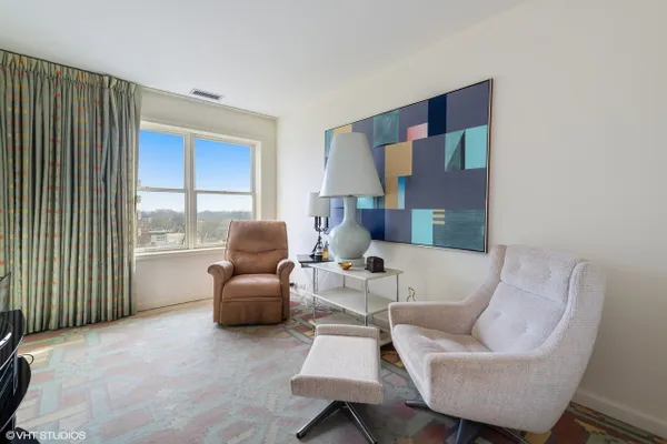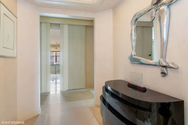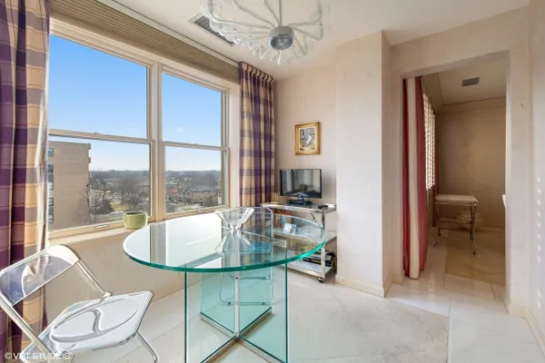 Welcome to Barclay Place! This rarely available SE corner unit in the West Tower is a tranquil 3 bedroom, 2.1 bath unit created from raw space by famed designer Richard Himmel; built-ins, moldings and additional millwork by Parenti; and textured custom paint by Hester. When you enter the foyer appointed with cove lighting you are greeted with over 2200sq. feet of gracious interior space. Living Room/Great room currently features two seating areas and a card table for entertaining and the built-in entertainment center has abundant storage and open shelving, vented fireplace and Beautiful travertine and white marble floors. The sliding glass door opens to one of the two balconies with beautiful downtown views. The third bedroom is currently used as a formal dining room (it is easily converted back into a bedroom). The main living space provides ample room for a dining area. Kitchen sits adjacent to a nice breakfast area, offers gas cooking and has custom sliding panels to close kitchen from main area while entertaining. The very large Primary bedroom suite has an oversized walk-in closet with tons of built-in drawers, hanging space and storage. The en-suite bath provides a jet tub, large, separate water closet plus shower fixtures can be added. Enjoy morning coffee on the bedroom southern balcony with wonderful natural light, downtown, courtyard and pool views. Additional bedroom with full bath directly across the hall, powder room and laundry room, with side by side washer/dryer and storage, complete this wonderful layout. Conveniently located by the elevators, two prime adjacent parking spaces (#282 and #283) are included. The complex, on 7 acres of land, offers many building amenities which include a 24-hour doorman, 2 exercise rooms, library, hospitality room, conference room, game room, and bicycle room. Outdoor activities available with a heated outdoor swimming pool, hot tub, patio, and tennis court. A large parking lot ensures free parking for guests. An active Social Committee arranges numerous events throughout the year, available to all residents interested in participating. These include performances, guest speakers, lectures, and classes as well as breakfast and dinner events. The Valley Line Trail passes just west of the property and provides a 4.5 mile multiuse path for cyclists and pedestrians that runs from the Sauganash neighborhood on Chicago's Northwest side to Skokie, with additional connections to the Forest Preserve Trail. Pets 35 lbs welcome. This property is an estate sale and being sold as-is.