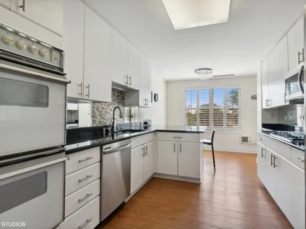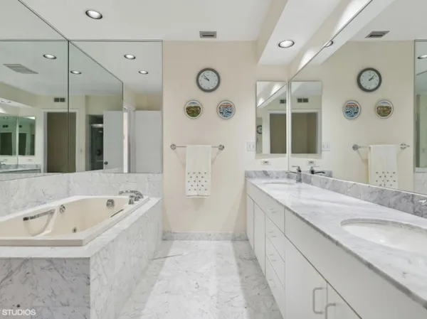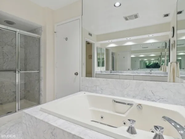 Lovely and elegant 2-bedroom 2-bath with hardwood floors throughout with led recessed lighting along with beautiful crown molding around, gourmet kitchen which includes newer granite countertop(2015), New stainless top of the line Sam Sung refrigerator, dishwasher and microwave. Expansive living room with gas log starter fireplace leads to bright sunny balcony facing East. Spacious master bedroom with walk in closet and a full bathroom with double vanity and a whirlpool tub and separate walk-in shower. 2nd bedroom has an suite with full bathroom. Laundry room has side by side LG washer(2021), and dryer. This home is ready move in condition. Storage room located 3rd floor next to home. 2 heated garage parking#117, 118. The building has many amenities which includes 24-hour door man, heated pool, exercise room, hot tub, party room, conference room, bike room, guest parking lots, tennis court. Easy access tp Hwy 94 to downtown, airport. Restaurant, shopping center within a few blocks. This property sold as is.