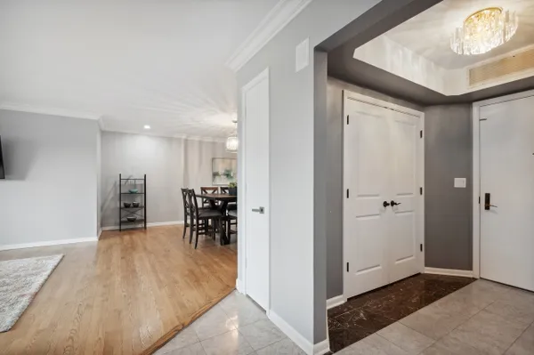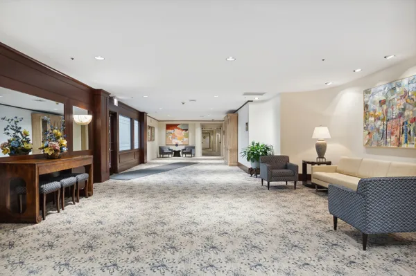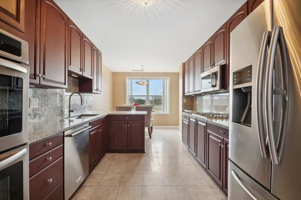 Welcome to Barclay Place Condominiums. This large and light filled, 2 bed, 2 bath condo offers 24-hour Doorman, Fitness Rooms, Heated Outdoor Pool with large Patio area, Tennis Courts, On-Site Maintenance Engineer, 2 garage spaces #320 & #325, plus plenty of convenient guest parking. This spacious condo has a formal foyer, with marble floors and large coat closet. The LR and DR are combined in an open concept layout with HW floors and a large sliding glass door that leads to the outdoor balcony with views of the tennis court. The eat-in kitchen has granite countertops and backsplash, an abundance of warm cherry cabinets, SS appliances including a double oven and built-in stove top, and a lovely space for table and chairs with outdoor views and access to the balcony, perfect for relaxing or entertaining. The primary bedroom is an en suite with a large walk-in closet. The bath has double sinks, separate shower and soaking tub. There is a 2nd bedroom with its own 2nd full bath across the hall. Finally there is a laundry room with stacked washer and dryer and convenient shelving for storage. Great location with easy access to shopping, restaurants, 94 and downtown. Lovely condo in a resort setting, schedule your showing today!