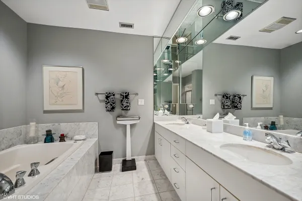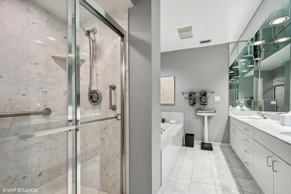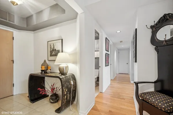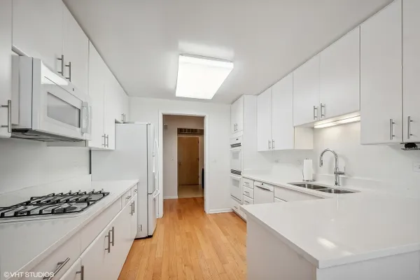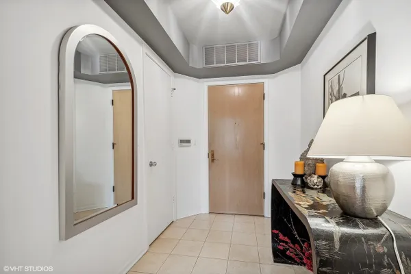 BARCLAY PLACE AT ITS FINEST!! A pristine and spacious two bedroom unit with one primary bedroom with spa like bathroom and two organized walk in closets and one bedroom that has been converted to a large open den/ family room. (This room can be converted back to the second bedroom by a future buyer.)There are two other baths, one full and one half, both with tasteful decor. The main living area boasts a fabulous living room, dining room with gas fireplace, recessed lighting, sliding doors to the magnificent first floor balcony that faces north and to the front of the building. The kitchen has been updated, new white appliances, new quartz countertops, new sink, and new faucet. The entire unit has hardwood floors except for the primary bedroom which has newer neutral carpet. The laundry room is not a closet and actually has tremendous storage.There is a total of 2133 square feet of living space (includes the balcony). The condo has 2 indoor heated parking spaces #312 and #313. The buiding ammenities include:outdoor heated pool, party room, exercise room, secure storage closet, library and tennis courts. Located across from the brand new residential/retail development. Amazing unit! This one won't last!